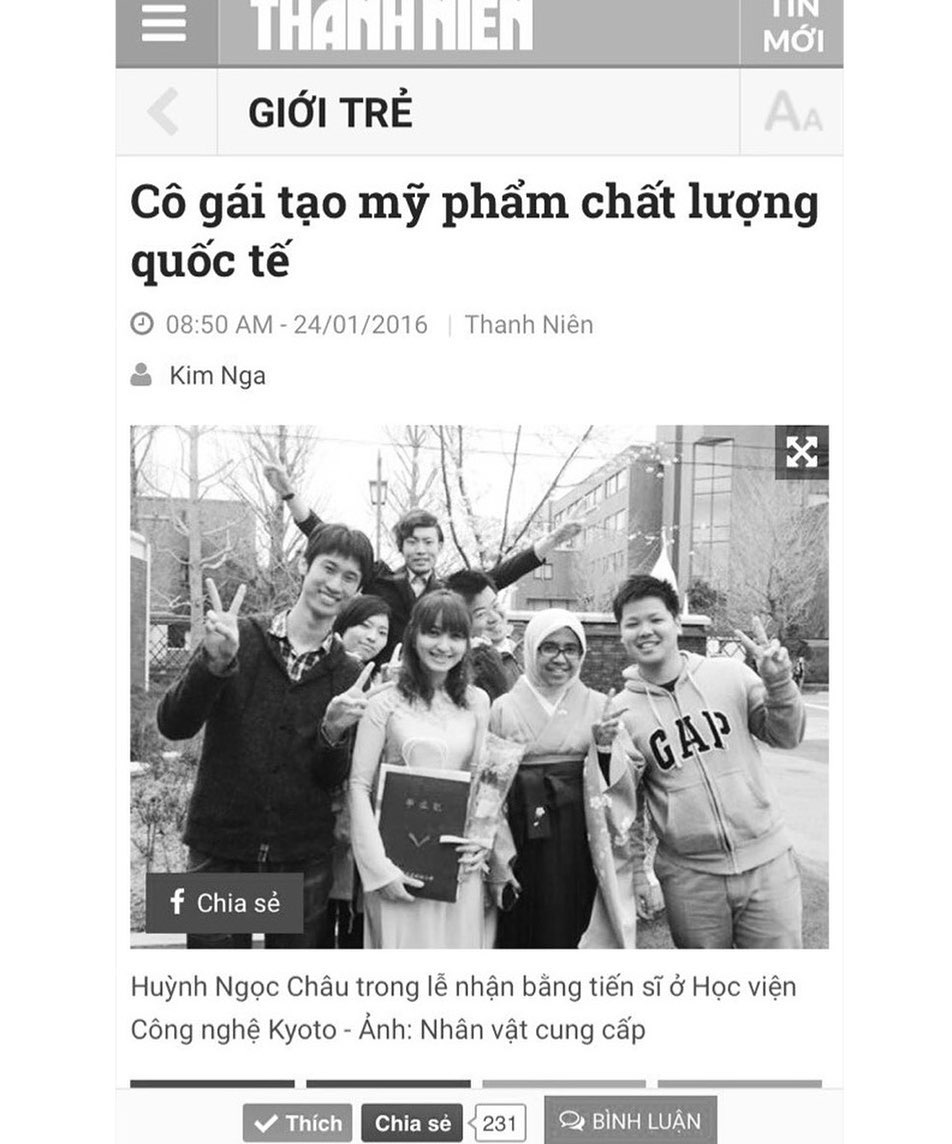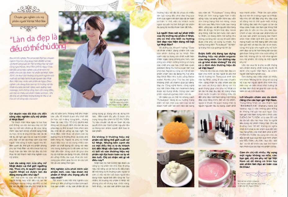 Dr. Chau Huynh đã trải qua gần hai mươi năm sinh sống, trưởng thành, học tập, nghiên cứu và công tác tại Nhật Bản & Hoa Kỳ. Sau khi hoàn thành học vị Tiến Sĩ Khoa Học tại Viện Công Nghệ Kyoto (Nhật Bản) với đề tài nghiên cứu về chất hoạt hóa bề mặt được ứng dụng rộng rãi trong công nghệ mỹ phẩm, cô nhận được lời mời làm công tác nghiên cứu phát minh mỹ phẩm mới cho các tập đoàn mỹ phẩm hàng đầu tại Nhật Bản. Trong suốt quá trình làm công tác nghiên cứu tại Nhật, nhiều sản phẩm do Dr. Chau nghiên cứu đã được phổ biến tại thị trường nội địa Nhật dưới tên nhiều thương hiệu mỹ phẩm nổi tiếng như *SSD, *RT, *NR, *TDL … (*tên viết tắt). Không chỉ dừng lại ở phạm vi châu Á, cô còn nhận được những lời mời cộng tác từ các tập đoàn mỹ phẩm tại Hoa Kỳ như *PC, *LO, *AC, *SV… Sau một thời gian làm nghiên cứu tại vùng metro New York – cái nôi cho ngành công nghệ làm đẹp của Hoa Kỳ và thế giới, Dr. Chau tiếp tục công việc nghiên cứu mỹ phẩm của mình tại Bắc California, một trong top 10 tiểu bang được đánh giá xanh-sạch và eco-friendly nhất tại Hoa Kỳ – nơi cô có nhiều điều kiện hơn để theo đuổi đam mê lớn nhất của mình: cống hiến cho sự phát triển của dòng mỹ phẩm sạch Organic và lan tỏa thông điệp sử dụng mỹ phẩm xanh và làm đẹp khoa học đi khắp thế giới.